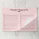 Moda de hacer lista impresa en una almohadilla de papel de lágrima en rosa rubor con un patrón de punto blanco y casillas de verificación prácticas en negro. Personaliza con tu nombre.