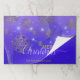 Eleva la configuración de la mesa de sus Navidades con la posición de papel de nuestros Navidades de personalizable! El diseño incluye copos de nieve dorados y luces brillantes en un fondo violeta degradado. El texto "Feliz Navidad" y el nombre de tu familia es totalmente personalizable. Transforme su experiencia gastronómica en una alegre obra maestra con esta deliciosa adición a las festividades de sus Navidades.