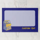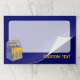 Ilustracion de rockola retro azul y naranja sobre fondo azul. Texto personalizado.