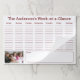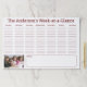 ¡Finalmente! Un calendario semanal diseñado sólo para tu familia. El diseño presenta un encabezado de personalizable en una fuente de color burdeos en la parte superior. Lugar para anotar su horario para cada día de la semana. También cuenta con un lugar para notas/recordatorios adicionales en la parte inferior. Lo mejor de todo, realmente personalizarlo con una foto favorita mostrada en la parte inferior izquierda. Ideal para hacer un seguimiento de los horarios ocupados que siempre están cambiando.