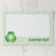 Símbolo de reciclaje con sombra de carpintería sobre hojas sin costura. Texto personalizado.