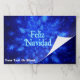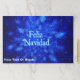 Un enjambre de copos de nieve fractales azules. El texto en español que dice "Feliz Navidad" aparece en azul y blanco brillante. Personalizar por su propio texto adicional.