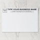 Papel portátil de papel desechable con suficiente espacio para escribir información importante para sus clientes o clientes. Panel de papel que puede personalizar el encabezado para poner su nombre comercial. Personalizar que anuncie su negocio o promueva su marca siempre que usted dé notas o información importantes a sus clientes o clientes. Un proveedor de oficina con su nombre comercial para crear conciencia de marca. El diseño de la cabecera es sencillo, en blanco y negro. Para el personalizar del encabezado de este panel de papel, cargue el logotipo de su empresa, escriba su nombre comercial o de la empresa, dirección, número de teléfono, correo electrónico y página web o página de medios sociales y, a continuación, compruebe la apariencia. Si la apariencia le resulta agradable, puede realizar su pedido ahora. Si necesita cambiar el tamaño y mover el logotipo y los textos para que encajen en el título de este panel de papel, cambie la herramienta de diseño. También puede realizar otros cambios según sus preferencias en la herramienta de diseño, como cambiar el color de fondo del encabezado, el color del tipo de letra, el estilo de letra y el tamaño del encabezado.