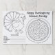 This paper pad has cute coloring activities to keep kids busy on Thanksgiving. The design features a turkey to color, a pumpkin pie maze, and a word scramble game. These are a great size for placemats! Customize with family or group name. Also works well for class rooms, scout troops, and clubs!
