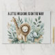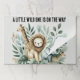 Un diseño minimalista con una acuarela, animales de bebé de safari y follaje de jungla muda, acentuado con un texto elegante para una ducha de bebé neutra de género o primer cumpleaños.