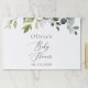 Añada un toque personal a la celebración de la ducha de bebé con estos artículos fiestas de diseño e inolvidables. El diseño presenta hojas de eucalipto y vegetación sobre fondo blanco.