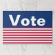 La parte superior es un campo azul que dice "Vote" en letras blancas. Hay rayas rojas y blancas en el fondo.
