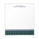 Almohadilla de notas personalizada con un borde del escotán familiar de Clan Abercrombie, un patrón tradicional escocés azul real, negro y verde de 1805.