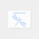 Hermoso bloc de notas adhesivas diseñado en blanco, con gráficos de una libélula azul. Personalice el texto azul personalizado en la parte superior del bloc para adaptarlo a sus necesidades.