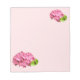 Un diseño de bonito con fondo rosa pálido con hortensias rosas que acentúan este bloc de notas.