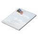 Billete de 5.5" x 6" con una imagen de una bandera estadounidense ondeando y un águila calva en vuelo contra un cielo azul turbio. Vea toda la colección de Notepad Patriótico de los 40 en los TOUCHES ESPECIALES | Sección de favoritos de partido.