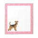 El personalizado original de Destei ilustracion de un adorable perro de la raza Airedale Terrier. El color de fondo medio es blanco ideal para escribir notas mientras que el color del borde es rosa con un patrón de formas de corazón rosado de diferentes tamaños.