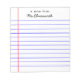 Añada un toque personal a cada mensaje con este bloc de notas con una línea personalizado que incluye un diseño clásico de papel para portátiles y su nombre en la parte superior. Este bloc de notas de 5,5" x 6" imita el papel tradicional regulado, convirtiéndolo en una herramienta nostálgica y funcional para el uso diario en el aula, la oficina o en casa. Fácil de editar usando la herramienta de Zazzle. Puede editar fuentes, colores, eliminar líneas y editar todas las palabras. ¡Es tuyo hacer el tuyo!