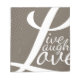 Diseño inspirador de Live Laugh Love. Montaje tipográfico de las palabras "Live, Laugh, Love." sobre un fondo de color gris marrón, con un fondo medio acentuado. Personalizar este gran producto con tu propio texto, monograma, logotipo o mensaje personal! (haga clic en el botón naranja "¡Personalizar!" que aparece arriba)