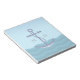Imagen náutica simple y elegante que consiste en un Ancla de naves con Monograma Doble sobre un fondo marino azul estilizado. Un regalo elegante para cualquier ocasión.