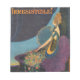 Diseño Art Decó de una mujer con una ducha de flores y la leyenda "¡Irresistible!" Púrpura colorido, azul y dorado. Vintage Mavis Perfume.