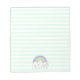 NewParkLane - Bloc de notas para niños personalizados con un lindo arco iris, con un fondo de rayas verde menta y una plantilla de texto para tu nombre u otro texto personal. Fácil de personalizar en Zazzle con su propio texto para un diseño personalizado. Todos los estilos de texto, colores, tamaños se pueden modificar para adaptarlos a sus necesidades. Mira esta colección para ver los elementos coincidentes. ¿Tienes deseos de diseño personal específicos? ¡Siéntete libre de contactarme!