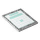 Billete de bingo con ducha de bebé de 40 páginas de moda acuamarina con un borde de menta acuática. Personalice estos tablones femeninos de juego de papel de bingo para bebé con huellas de animales agregando el nombre de la madre a ser y su fecha de vencimiento. Cómo jugar: Enséñale a los invitados que rellenen los espacios en blanco con regalos para bebés que creen que la nueva mamá abrirá y los desmarcará cuando el objeto esté desenvuelto. Imagen plana impresa. Derechos de autor de arte original de ©PartyPlans