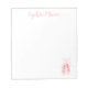 Este bloc de notas rosado de bonito es perfecto para la bailarina o bailarina de su vida. Para el nombre se utiliza un elegante tipo de letra de guión, y las zapatillas de bailarina rosa adornan la esquina inferior derecha del bloc de notas.