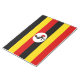 Este diseño presenta la bandera nacional de Uganda (conocida oficialmente como la República de Uganda), que es un país sin litoral del África central-oriental. La región sur de Uganda incluye una parte sustancial del lago Victoria, compartido tanto con Kenia como con Tanzania. Uganda está en la región de los Grandes Lagos de África; Uganda también se encuentra en la cuenca del Nilo. Uganda limita al este con Kenya, al norte con Sudán del Sur, al oeste con la República Democrática del Congo, al sudoeste con Rwanda y al sur con Tanzanía. La capital de Uganda es Kampala, que también es la ciudad más grande del país. Otras ciudades y pueblos importantes de Uganda son Nansana, Kira, Ssabagabo, Mbarara, Mukono, Njeru, Gulu, Lugazi, Masaka, Kasese y Hoima.