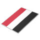 Este diseño presenta la bandera nacional de Yemen (oficialmente conocida como República de Yemen), que es un país en el extremo sur de la península Arábiga en Asia Occidental. Yemen está rodeado por Arabia Saudita al norte, el Mar Rojo al oeste, el Golfo de Adén y el Canal Guardafui al sur y Omán al este. Además, el territorio de Yemen abarca más de 200 islas, incluyendo las islas Socotra en el Canal Guardafui. La capital de Yemen, Saná, es la ciudad portuaria de Adén, actualmente la capital temporal. Otras ciudades importantes en Yemen son Taiz, Al Hudaydah, Ibb, Mukalla, Dhamar, 'Amran, Bajil y Sadah.