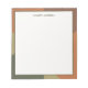 This personalized notepad features a clean writing space framed by a Bauhaus-inspired terracotta and green abstract border. The balanced layout provides ample room for notes, lists, and daily planning while maintaining a structured, modern aesthetic.