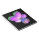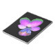 Este impresionante bloc de notas muestra una fotografía de una flor Pansy salvaje. La foto ha sido pintada artificialmente, lo que ha resultado en una marsopa con pétalos rosados brillantes de color violeta con puntas verdes de pétalos y un centro azul profundo. El fondo es negro para hacer que la flor destaque.