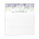 Bonito personalizado de frontera floral notepad. Borde de delicados iris de acuarela. Tonos morados y lilas. Páginas elegantes alineadas.