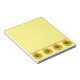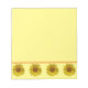 Bloc de notas amarillo con cuatro flores de girasol en la parte inferior, debajo de una línea naranja horizontal.