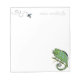 Un lindo camaleón personalizado verde apuntando a una pequeña mosca en este bloc de notas. ¡Puedes cambiar fácilmente las palabras aquí para tu propio papel de nota única!