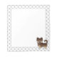 El original ilustracion personalizado de Destei de un chocolate y un perro de la raza chihuahua de tan largo abrigo. Los bordes del fondo tienen un patrón de huellas de perros grises mientras que el medio es blanco.