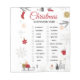 Festive Christmas scavenger hunt checklist artwork with a clean white background and charming holiday illustrations. Designed with elegant red cursive typography, surrounded by cozy winter elements like evergreen branches, snowflakes, houses, trees, a snowman, and warm holiday details. The balanced layout creates a joyful seasonal atmosphere perfect for family-friendly celebrations. All text and images are fully editable, allowing easy changes to match any style or preference.