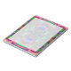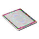 Billete de 5.5" x 6" con una imagen de un fantástico fractal azul, verde, fucsia y naranja de cintas y arcos y un espacio de escritura transparente blanco. Ver la colección Psychedelic 60s Notepad en los TOUCHES ESPECIALES | Sección de favoritos de partido.