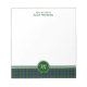 Almohadilla de notas personalizada con un borde y monograma trenzados. Presenta el tartán de Clan Murray, de fecha 1831. Patrón tradicional escocés en tonos azules y verdes con resaltes negros y rojos.