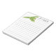 A beautiful Australian green parrot flying note pad saying " Just winging by..."