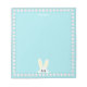 Conejo blanco y flores blancas en el Bloc de notas azul turquesa claro. El texto se puede personalizar.
