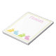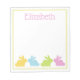 Este lindo bloc de notas presenta adorables conejos conejitos en tonos dulces de rosa, azul, verde y amarillo sobre blanco sólido. Personalice con su elección de nombre o texto especial en color rosa coincidente. Hace grandes favores de fiesta para Pascua o para cualquier época del año!