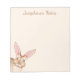 La ilustración de acuarela de Destei de un conejo marrón adorable con orejas extra grandes sobre un fondo de color beige. También hay un área de texto personalizable para un nombre u otro texto personalizado. ¡Este diseño es ideal para Pascua!