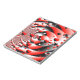 Un diseño de arte fractal único con muchos corazones pequeños en rojo y negro.