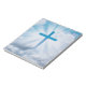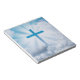 En este bloc de notas se ve una preciosa imagen de una cruz azul que atraviesa las nubes. El panel de notas es de 5,5" X 6" con este diseño impreso en cada página, perfecto para trabajo, hogar o escuela! Utilízate o dale como regalo para Pascua, Confirmaciones y más!