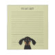 Notas de Dachshund Lover. Gracioso cachorro negro de pelo largo y doxie morado. El texto puede ser personalizado con su nombre o lema. Cuto bloc de notas de papel alineado para las listas de trabajo, tareas pendientes, escuelas y comestibles. Hace un regalo divertido para un amigo para un miembro de la familia que ama los perros más limpios. Disponible en más colores de papel.