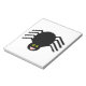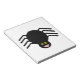 Este impresionante bloc de notas presenta una espeluznante araña negra con ocho piernas peludas, ojos amarillos con grandes pupilas negras y su boca abierta mostrando sus colmillos.