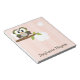 Una linda lechuza marrón y verde limón se sienta sobre una rama arbolada con un fondo de nubes esponjoso rosa y rayado. Este lindo y kawaii personalizado sabio personalizado de búho puede ser personalizado con tu nombre o lo que quieras decir. Pintura © Chrissy H. Studios, LLC. Todos Los Derechos Reservados.