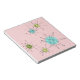 Este patrón de Bloc de notas de los Starbursts Atómicos Icónicos Rosa presenta estallidos atómicos icónicos. ¡Así es! La vieja escuela, el fondo de color rosa de la primera dama con especkles de oro, es el escenario perfecto para el turquesa vibrante, el apetitoso apio y los círculos kitschy de color verde pera. Las manchas de color se colocan esporádicamente en varios tamaños, con líneas en forma de V negra superpuestas que forman las estallidas modas del sputnik. Diseñado siguiendo un patrón de platos de la década de 1950, este diseño de inspiración retro tiene todo lo necesario para ser realmente moderno a mediados de siglo.