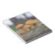 Este impresionante bloc de notas muestra una hermosa y detallada fotografía de 4 pequeñas taburetes amarillos saliendo de un registro en un parque. El fondo está difuminado y los hongos son fotografiados a nivel para que veas el mundo desde su perspectiva.