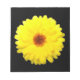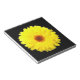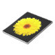 Este impresionante bloc de notas muestra una foto de una flor de mariscos amarillo fluorescente en un fondo negro.