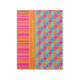 Un Notepad o Jotter fresco para personalizar, con un patrón islámico tradicional en rosa brillante, naranja, azul turquesa y verde claro, unido con rayas a juego. Parte de la colección "islámica" de Posh & Painterly.