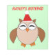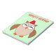 Este impresionante bloc de notas muestra un personalizado gracioso de un búho Navidad con ojos somnolientos, un pequeño pico naranja y lindos pies naranjas. La lechuza es marrón, con un barril de crema y lleva puesto un sombrero de Santa Claus rojo y blanco listo para los Navidades. Hay un texto de personalizable en la parte superior del bloc de notas que te permite personalizarlo por ti mismo o convertirlo en un regalo encantador para alguien más.