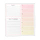 Presentamos nuestro Bloc de notas de planificación semanal de personalizable, diseñado para optimizar su semana con una organización sin esfuerzo. A la izquierda, encontrarás dos cajas alineadas, preparadas para tu toque personalizado. Ya sean tareas, objetivos o recordatorios, estas secciones mantienen su enfoque claro. Mientras tanto, el lado derecho presenta siete cajas con código de color para cada día de la semana, personalizable para que puedas empezar la semana el lunes o el domingo (o usar las cajas para otra cosa por completo). De coral suave a amarillo mariposa, cada día se resalta, haciendo que la programación sea una brisa. Aumente su experiencia de planificación con este elegante y práctico bloc de notas, diseñado para traer armonía a su semana.