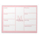 Este adorable y personalizado planificador semanal cuenta con un fondo de color rosa con mini puntos blancos. Personaliza con un nombre y una inicial.